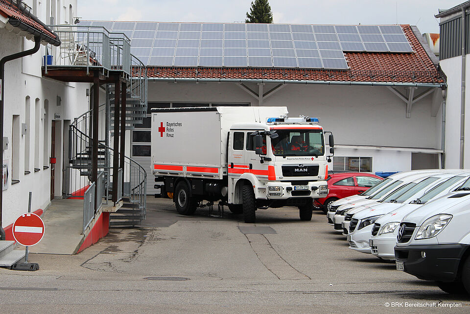Der allradgetriebene MAN-Lastwagen ist 3,76 Meter hoch und hat ein zulässiges Gesamtgewicht von 18 Tonnen und 340 PS. Ausgestattet ist der Gerätewagen mit einer zwei Tonnen tragenden Hebebühne. "Hier können wir auf einen Schlag viele Feldbetten und Material transportieren", betont Sebastian Stadler, zuständig für die Öffentlichkeitsarbeit des BRK Kempten. Ein großer Vorteil ist, "dass wir dank des höheren Radabstandes durch Hochwasser fahren können, wo normale Lkw schlicht absaufen würden." Das Fahrzeug sei rund um die Uhr am Standort Kempten einsatzbereit. "Das ist auch die Vorgabe des Freistaates Bayern."